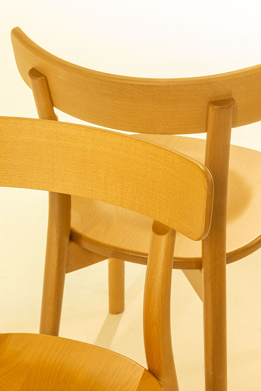 A dining chair with a solid wood structure and no upholstery, offering a minimalist and durable design.