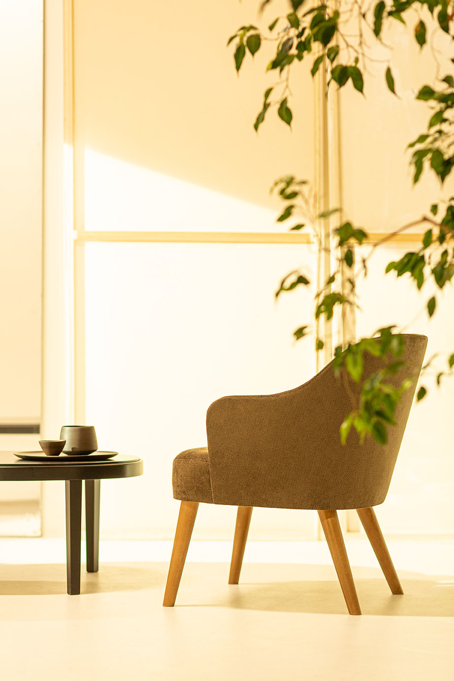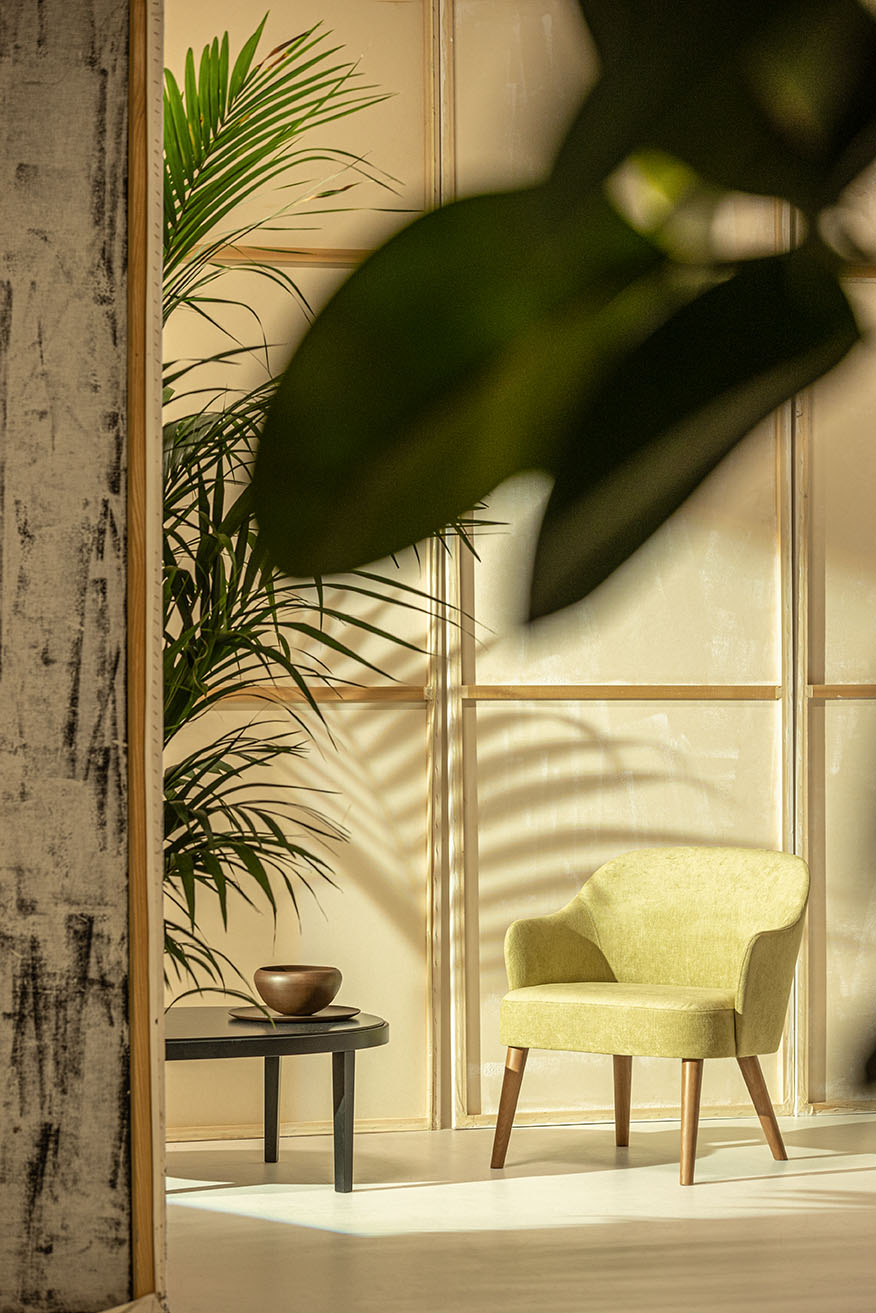 A lounge chair with an upholstered seat and backrest, offering stylish comfort and a harmonious design.